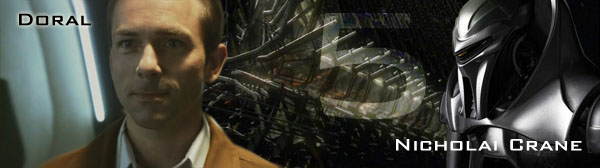 Nicholai Crane was discovered to be a Cylon when a poisoning incident placed him in a position to attempt the murder of Commander Darius and Captain Furyk. Whilst being held in Myriad's brig, the air system was sabotaged and he suffocated. He resurrected on board a near by Basestar. He re-joined the Myriad and its fleet again with the Battlestar Charybdis.