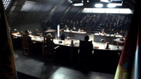 With the Myriad fully repaired and Nicholai Crane in the Battlestar’s brig, the Fleet Council turns again to the question of where the fleet should go next, torn between fleeing Colonial space or striking the Cylon base in the Tigris Sector. Nestra Duvali is dispatched aboard the Crazy Ace to scout Tigris but not before Teucer and Ward have again clashed over the state’s seizure of private assets, which the Accretion Disc is resisting. A ballot is held to choose the Arbiters for the trial of Krysten Furik; Priam Teucer, Catteus Malo and Nicteus Phileman are selected, with Katsuga Moran serving as the prosecution. Furik’s defence, a marine named Max Yurl, is also confirmed and petitions the Council to allow trial under military tribunal but is rebuffed. The Session ends with a report from Dr Nereus that more people are falling ill from the contaminated medicine, the source of which is still unclear. Ward and Teucer almost come to an agreement over the toleration of the Disc’s drug labs but his demands to remain Captain in perpetuity cause an explosive argument. Meanwhile, Max Yurl and Katsuga Moran are reviewing the last of their evidence in the prelude to Furik’s trial. With no warning, Commander Darius awakes; learning of Furik’s trial he demands to be taken to the court chambers at once. There Moran argues his guilt of crimes against humanity, through a combination of incompetence and negligence. Her case was based on testimony from Professor Sultran that there were 322 people aboard the Artemis Retreat and the allegation that Furik was consuming the halleucinogenic substance Khamala. The Arbiters were shown the flight recorder data before Sultran and Furik took the stand. Max Yurl shows the court the gun camera footage, which gave no sign of human survivors and questioned Ivor Nereus who indicated that Furik’s piloting abilities had improved since the time he reports taking the drug – which was after the Hephaestus incident. Joker, Furik’s co-pilot on the mission, also confirmed to the court she saw no survivors. With the sympathy of the Arbiters tilting towards Yurl, Moran demands that the Oracle from whom Furik claims he got the Khamala be required to give testimony; on her refusal, the Oracle is placed under house arrest. A commotion breaks out when Commander Darius lapses suddenly into unconsciousness and the court adjourns to reach a verdict. Darius awakes a few hours later, even as Ward and Dorian are undertaking investigations into who attempted to poison the Commander, the CAG and the Cylon. Dorian reports that the perpetrator covered their tracks well; neither she nor Ward can identify the culprit. But shortly afterwards, there is a false explosives alert on the same deck as the brig and the area is evacuated; by the time the ruse is revealed, Crane is dead, the oxygen sucked from his cell. Again, no culprit is identified. The investigation halts for Furik’s verdict: by a vote of two to one, he is found not guilty and amid tumult and clamour he is set free. Ward and Dorian meet to discuss using Teucer’s people to investigate the inexplicably fruitful hydroponics bay but end up cracking a cipher on a datastick retrieved from the Galleon by Ward; one of four encrypted files on the stick, it contains a partial record of the Galleon’s movements, including its waypoints at resource-rich worlds. Just then, Nestra returns from her scouting mission and reports that the Tigris Sector base is lightly armoured and defended by a solitary Basestar. Stanton, still in command, agrees with the Council that the mission should go ahead; as the civilian fleet jumps to a safe rendezvous point, the Myriad prepares for battle. The Gryphon is used to scout the disposition of the Raider patrols; the Battlestar exploits a gap in fighter cover to rapidly demolish the Basestar before her Vipers start engaging the Raiders. Dorian detects the unusual radiation signatures once more. The Base rapidly evacuates; as the last of the Heavy Raiders jumps away, CIC receives a transmission from human survivors on the Base, who claim to be from the Artemis Retreat. Raptors are dispatched to the Tigris Base and the three hundred civilians are recovered; Furik, already judged innocent, is fully exonerated. He has little time to enjoy it, however, as he loses consciousness on the return flight to the Myriad. His Viper is recovered and he is found to be suffering an extreme case of the med contamination. But the contamination of the meds is suddenly explained. Nereus' deputy, Tomasi, reveals evidence that Dr Nereus knew the source of the contamination all the time - and indeed that he was responsible for it. Zetes has more shocking news still; when he locked down the compartment containing Nereus' quarters, he found Cylon code being fed into the system by the Doctor. Dr Ivor Nereus is a Cylon. The marines storm Nereus’ room, restraining him for the walk to the brig. Even as they do so, however, Jena is walking through the corridors of the Myriad, flanked by a man who looks a great deal like Leoben – a man only she can see or hear. She arrives at Hangar 1, Bay 5, the bountiful hydroponics chamber. We are floating in space. Furik is beneath us, lying in a pool of stars, at peace. A light touches his face. He reaches to it and begins to move towards the distant illumination. As he comes close, he sees a hand stretching out of the light. Propping himself on one arm against some insubstantial support, he reaches out towards it. The glowing fingertip touches his and a brilliant burst of white consumes the scene. In the Brig, Nereus’ interrogation goes as no one expects. He claims to be part of a renegade faction of Cylons who reject the war on humanity and wish to end the Cycle of Time; Nereus says his cohorts, all of whom are modified ‘variants’ of the seven humanoid models, can no longer tolerate the deaths of billions across the reaches of time at the will of the One God. Nereus and the 