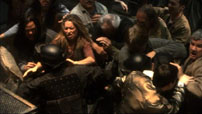 The Myriad and civilian ships jump to empty space in the middle of the Colonial System. Fights break out all over the fleet as news spreads of Sheryl Timuc’s true identity as an Eight. Matters come to a head as a bomb rips through the air recycling system, just after Jena Dorian is sent to repair it. Dorian miraculously survives and a Six, calling herself Alice Cestus, is apprehended. Commander Darius shoots her and Nereus rushes to extract remote detonation transmitters, linked to other bombs, from inside her body. The attempt is successful and no other bombs are detonated, though Darius is accused of war crimes in his treatment of Cestus. Nestra, recognising the Six as a model she once smuggled into the Colonies, goes to ground. Furik reports the encounter with the Colonial ships but does not tell Darius, who informs the press that there were no casualties during the assault. Unfortunately, this is not the story that the two recovered scientists tell; controversy once more tears through the survivors as it is claimed that Krysten Furik murdered over three hundred humans aboard the Hephaestus. Months pass as preparations for elections proceed and resentments over the Hephaestus attack simmer. Althea Ward and Nicholai Crane are nominated and the campaigns begin, the former holding a substantial lead in opinion over the Caprican. The efforts of both are threatened when it emerges that they were both unwittingly under arrest when en route to Caprica before the attacks, on the charge of incitement to riot. Three hundred days after the Cylon attacks, the elections are just around the corner when Jena Dorian discovers a radiation emission from the Myriad. As soon as it’s deactivated, the Cylons attack and the fleet flees to the rim of the Colonial System. The elections are held, with Crane on a capitalist platform and Ward a socialist one; the latter wins, but by a narrow margin. Her first role as Governor is to confirm the Justice Commission’s decision that the laws of individual colonies are to be dissolved in favour of federal law. But this is overshadowed as six Saggitarons on the Augea kidnap two Marines, demanding that the war criminal Krysten Furik be executed... |